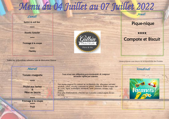 Accueil > Education/Jeunesse > Périscolaire > Menu restaurant scolaire